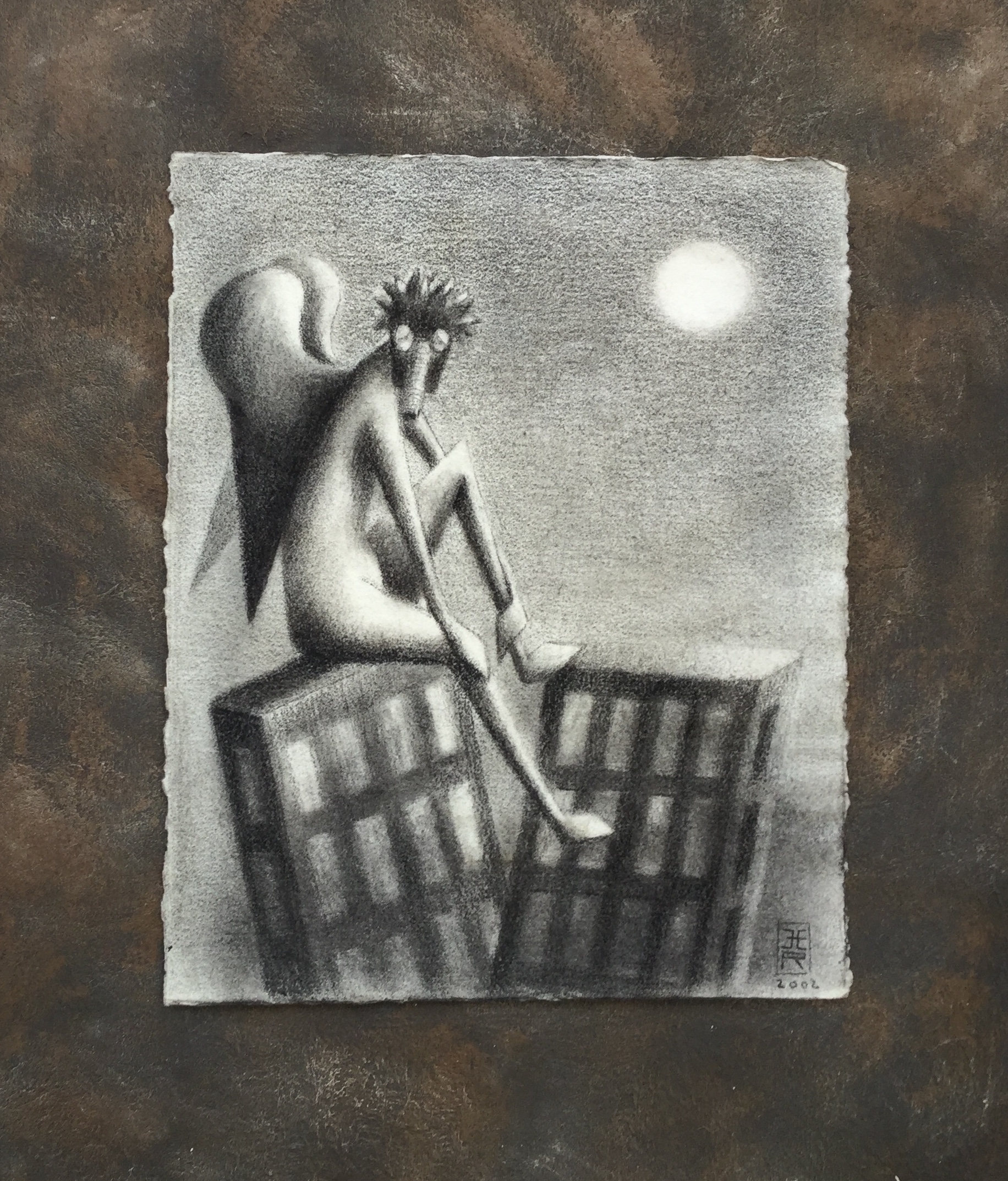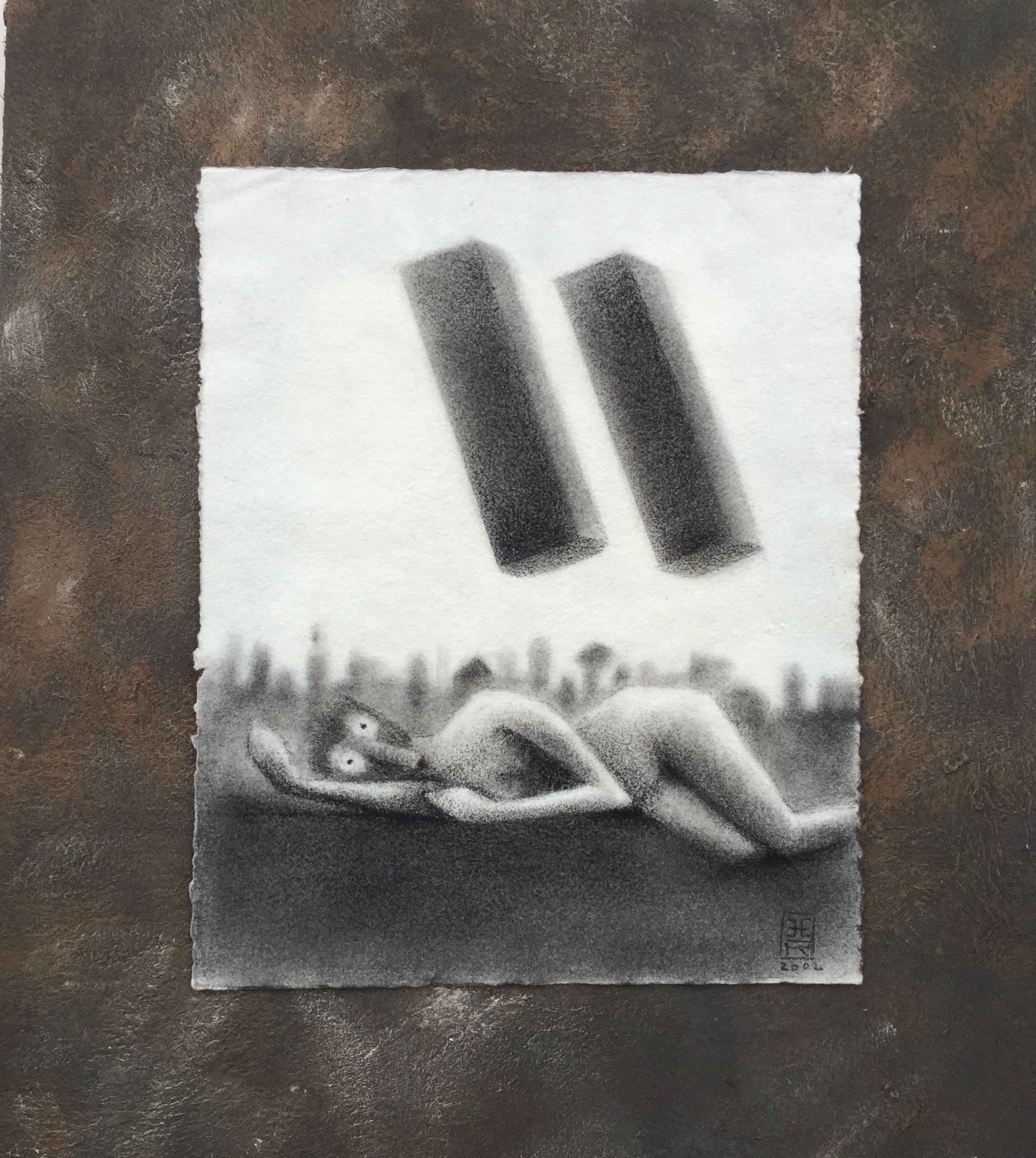 Twin Tower series , Angel 2002 (charcoal on Zecchi handmade paper, 19×23)Twin Towers series Fallen 2002 ( charcoal on Zecchi handmade paper, 19 x 23 )Twin tower series, Escape 2002 (charcoal on Zecchi handmade paper, 19 x23)Twin Towers series God’s Law (charcoal on Zecchi handmade paper, 19 x23)Twin Towers series Waking Dream ( charcoal on Zecchi handmade paper, 19x 23 )twin Towers series Caught (charcoal on Zecchi handmade paper, 19 x 23 ) Twin Towers series Astonished 2002 (charcoal on Zecchi handmade paper, 19 x 23 )Twin Towers series Burning (charcoal on Zecchi handmade paper, 19 x 23 )Twin Towers series Hero 2002 (charcoal on Zecchi handmade paper, 19 x 23 )War window 2003 (pen, ink, tempera on Magnani Annigoni paper, 23 x 31 cm )War window 2003 (pen, ink, tempera on Magnani Annigoni paper, 23 x 31 cm )War window 2003 (pen, ink, copper leaf, tempera on Magnani Annigoni paper, 23 x 31 cm )