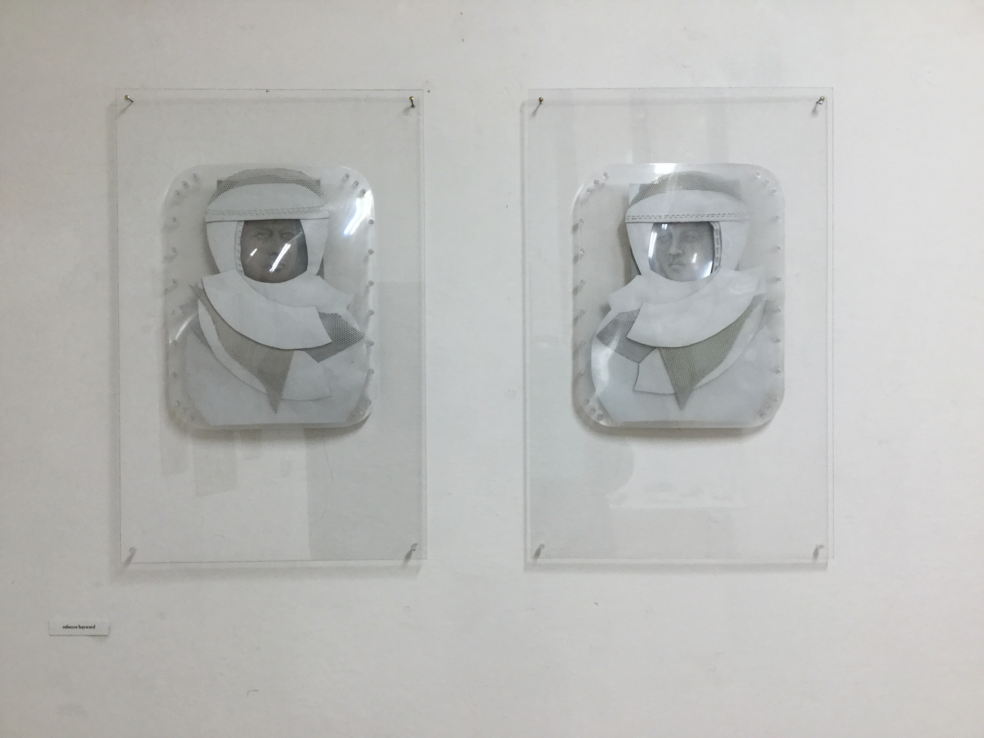 The crying astronauts 2017/18 ( oil on paper plexiglas, leather, metal, lenses )